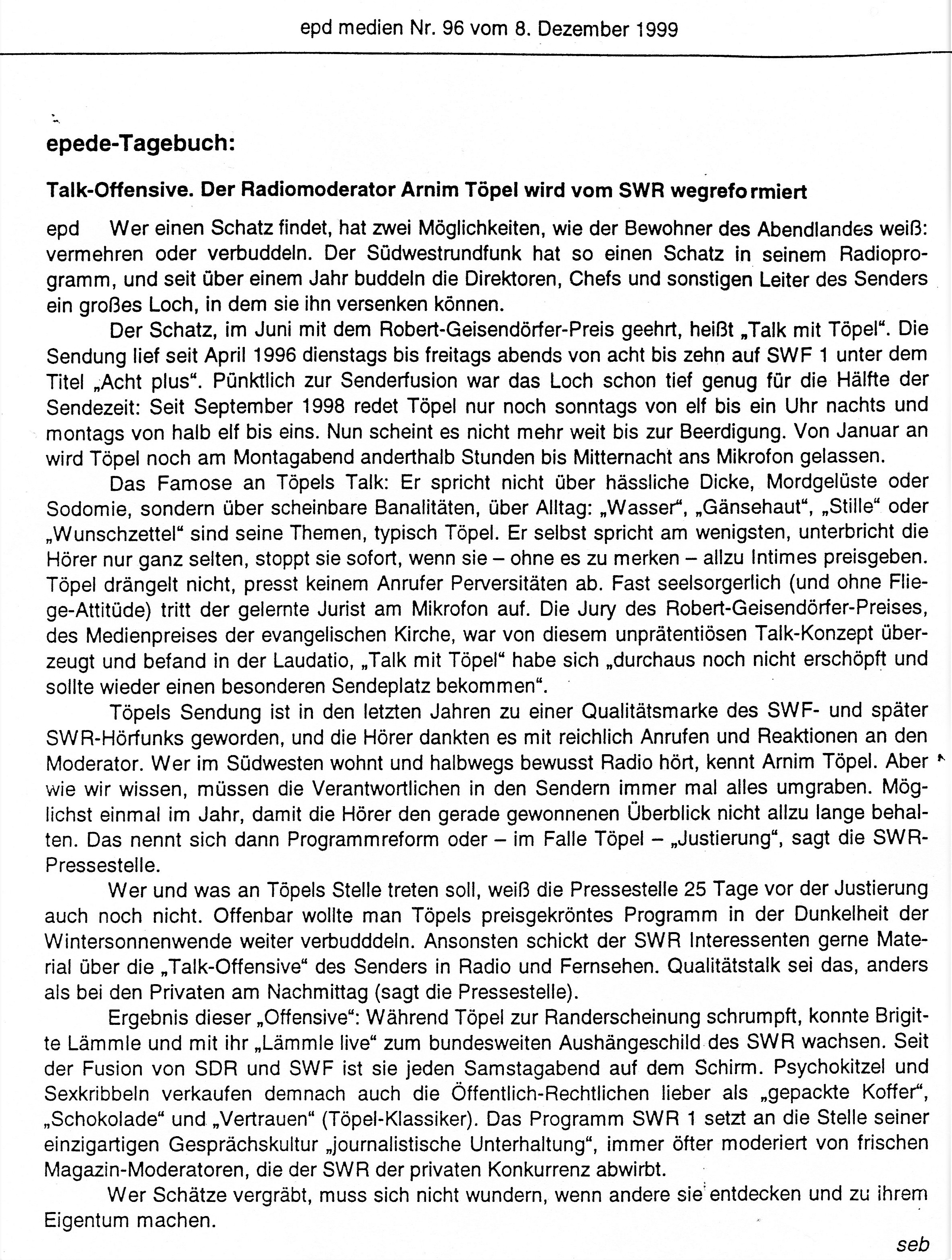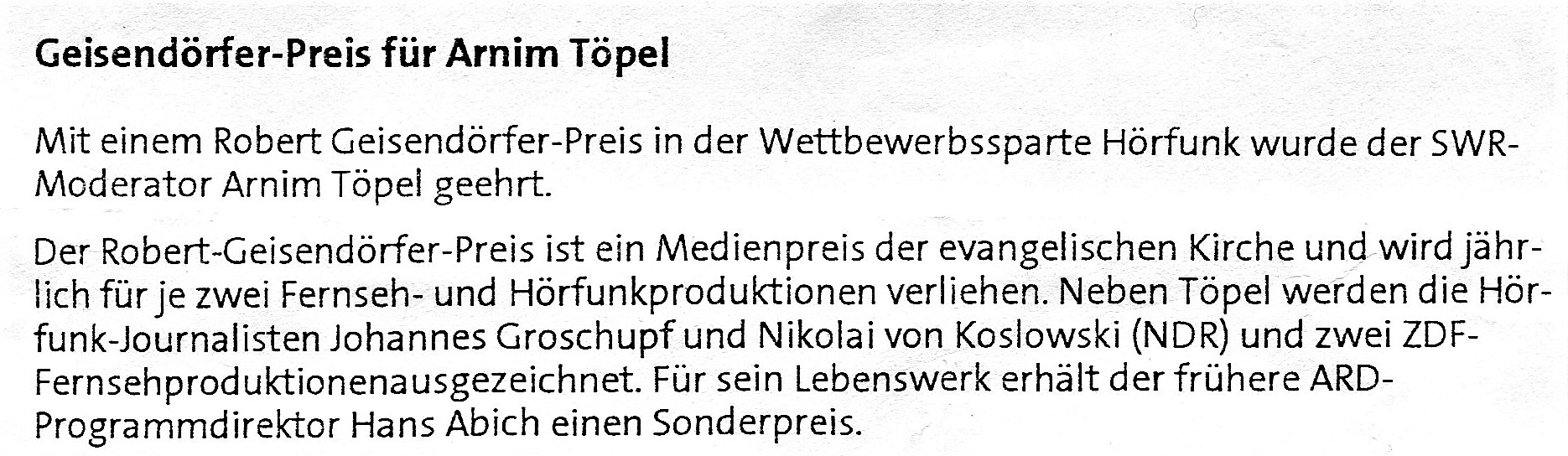 PPS: Meinen sonntäglichen Podcast TALK-RADIO DAMALS - Erinnerungen an meine Sendung im Südwestfunk, Baden-Baden habe ich (vorläufig) beendet, 18 Folgen sind zu hören bei Apple Podcasts.
