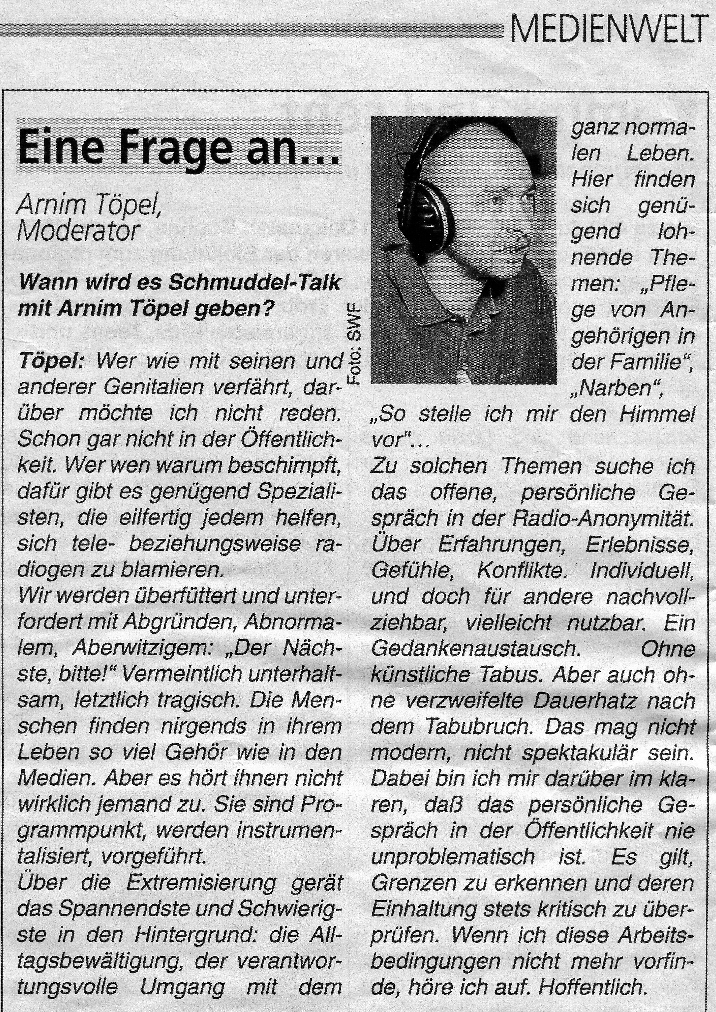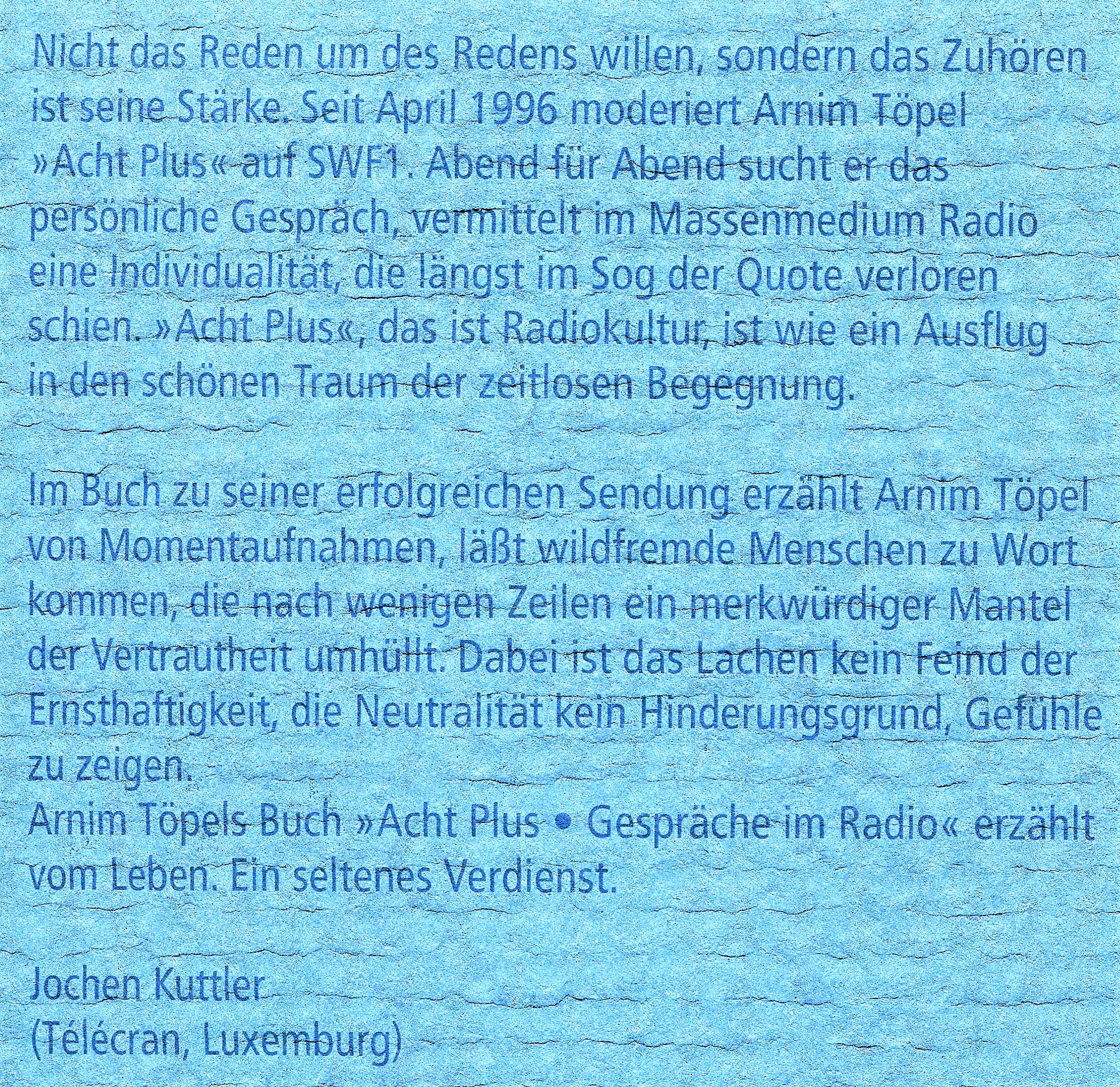 PPS: Meinen sonntäglichen Podcast TALK-RADIO DAMALS - Erinnerungen an meine Sendung im Südwestfunk, Baden-Baden habe ich (vorläufig) beendet, 18 Folgen sind zu hören bei Apple Podcasts.